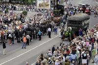 Chemnitz – Begleitet wurde die zwanzig Tonnen schwere Lok auf ihrem zwei km langen Weg von einem historischen Festumzug mit einer weiteren Dampflok auf einem Tieflader, verschiedensten Fahrzeugen aus der Zeit um 1900 und im Stile der Zeit gekleideten Bürgern. Unter den Teilnehmern waren auch die beiden Schirmherren der Veranstaltung: Sachsens Wirtschaftsminister Thomas Jurk und die Chemnitzer Oberbürgermeisterin Barbara Ludwig begleiteten in einer historischen Kutsche den Festzug mit über 150 Mitwirkenden und gut 30 Pferden. Laut Einsatzleitung der Polizei waren rund 45.000 Zuschauer vor Ort.