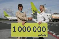 Today the Latvian airline airBaltic congratulated the passenger taking 1 000 000th flight that was booked on the Internet at airBaltic.com .