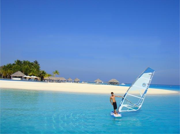 Wind und Wasser prägen den Funsport auf Velassaru: Für die frische Brise sorgt eine spritzige Runde Wasserski, Wake Board oder Fun Tubing. Beim Wind- oder Kitesurfen und Katamaran segeln geht’s raus in die Lagune. Wem das noch nicht schnell genug ist, der kann mit dem Seabob an Geschwindigkeit zulegen. Hoch in die Lüfte geht’s beim Parasailing.