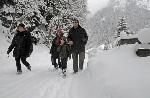 Foto: Romantische Winterwanderung mit Landwirt Ferdinand Pranger. Ferdinand Pranger (re.) und sein Sohn Alexander begleiten Nadia (li.) und Silvia auf einer Winterwanderung durch die verschneite Gschnitzer Natur. / UaB