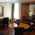 Zimmerausstattung * Ergonomischer Arbeitsplatz * Voll klimatisiert * 24-stündiger Zimmerservice * Minibar * Kaffeemaschine * ISDN-Telefon, Anrufbeantworter * Kabelfernsehen mit Wunschfilmen * Highspeed- und kabelloser Internetzugang * Fön im Bad * Zimmersafe